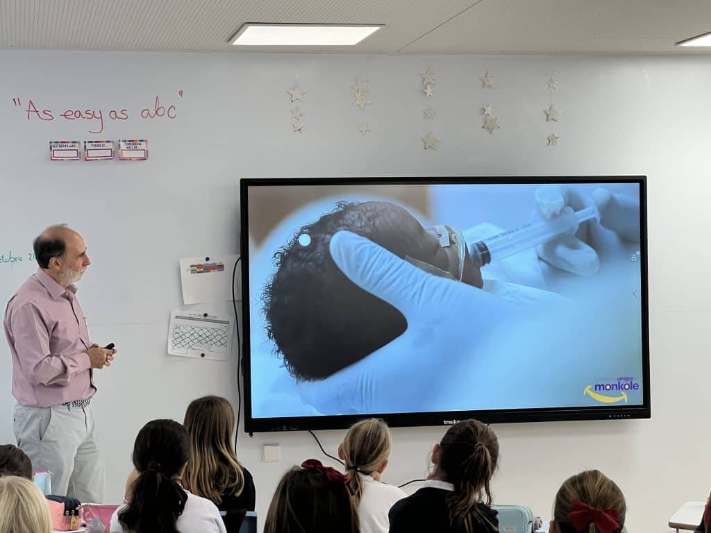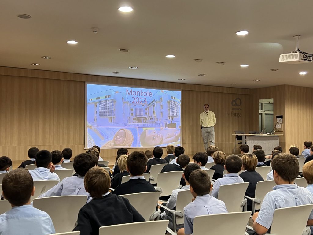 A finales del pasado mes de octubre viajamos a Valencia y Barcelona para impartir decenas de sesiones de sensibilización sobre los proyectos solidarios que desarrolla nuestra fundación en la República Democrática del Congo, a través del hospital materno infantil Monkole y sus antenas (centros de salud). Concretamente estuvimos con estudiantes de los colegios Guadalaviar (Valencia) y La Farga (Barcelona). Este último, fundado en 1969, cuenta con nada menos que 1.500 alumnos.